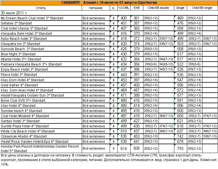 27 Июл 2011 16:06:22 ТУРЦИЯ. Алания с 30 июля по 03 августа (5дн/4ночи) - от фирмы АЛМА ТУР