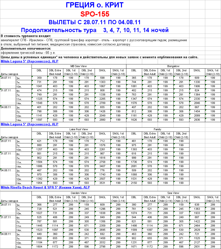 ГРЕЦИЯ, о.КРИТ - ВЫЛЕТЫ 28.07 и 31.07 - КОМИССИЯ 15% на Mitsis Laguna и Mitsis Rinela от 359 у.е от фирмы ЮЖНЫЙ КРЕСТ |