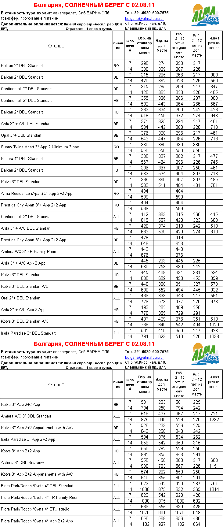 27 Июл 2011 16:17:15 БОЛГАРИЯ, СОЛНЕЧНЫЙ БЕРЕГ с 02.08 от фирмы АЛМА ТУР