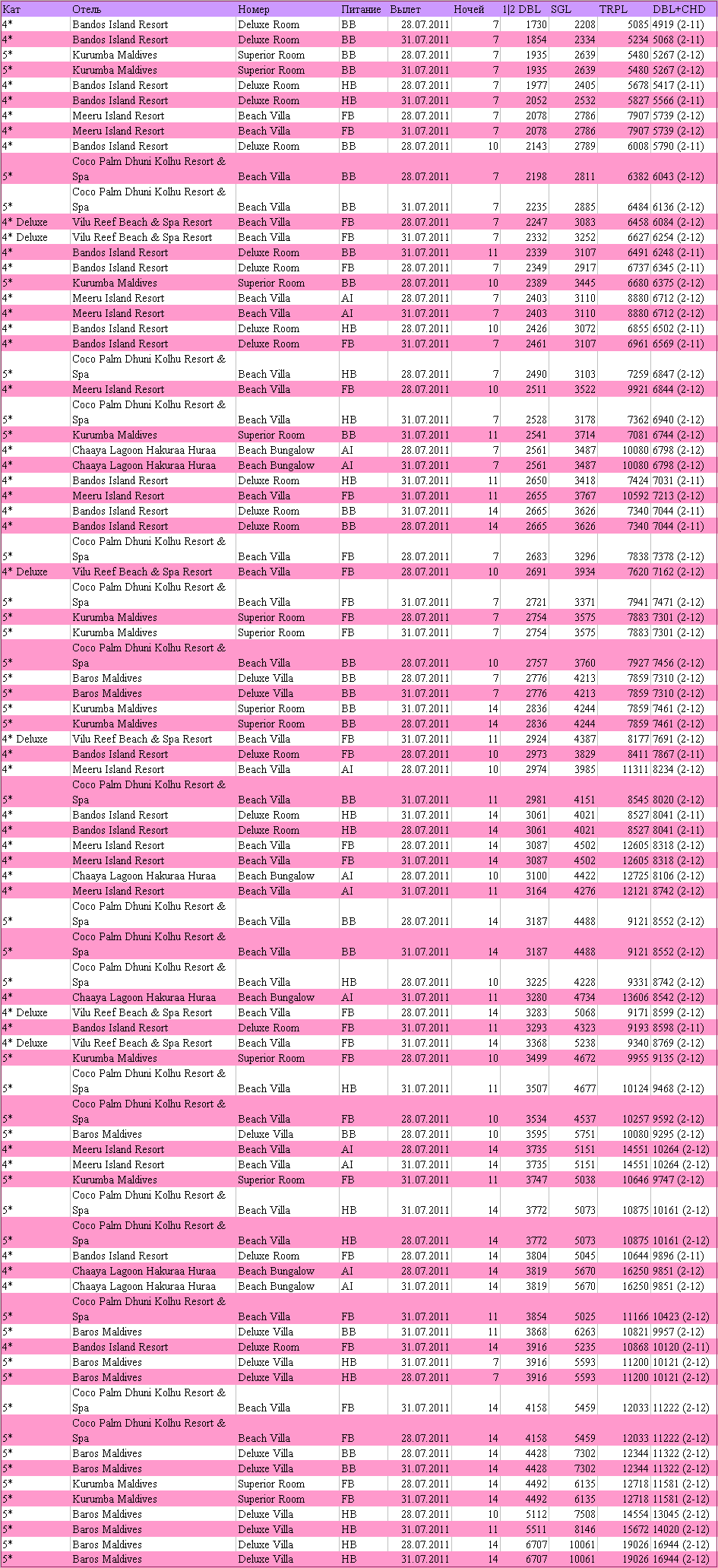 на Мальдивах в выбранном отеле на базе указанного питания ;