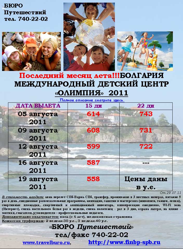 29 Июл 2011 14:07:42 БОЛГАРИЯ - Лагерь "ОЛИМПИЯ" ЦЕНЫ НА АВГУСТ - от фирмы БЮРО ПУТЕШЕСТВИЙ