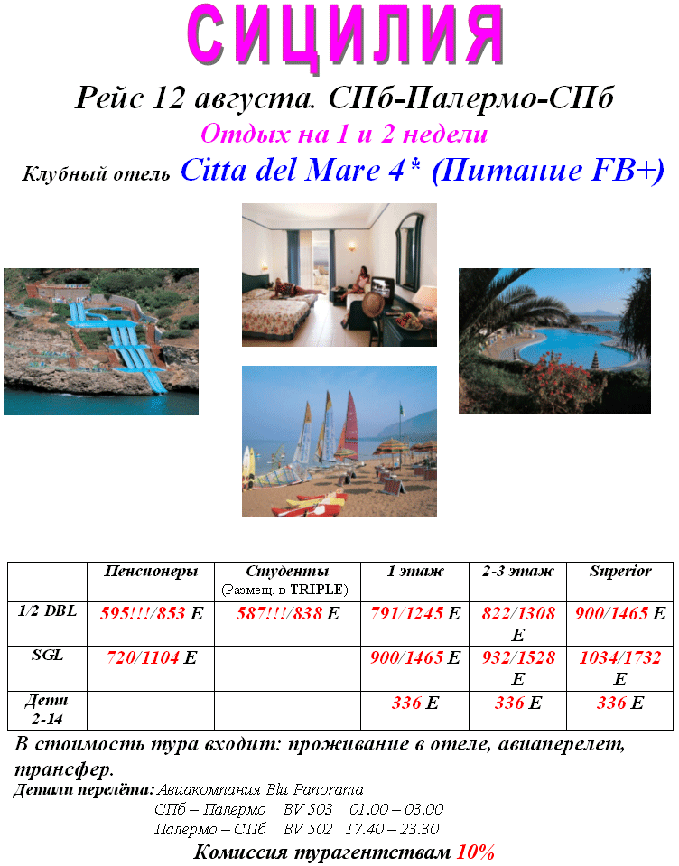 31 Июл 2011 16:02:07 ИТАЛИЯ Сицилия 12.08, Citta del Mare 4* Ком. 10% от фирмы АВАТАРА