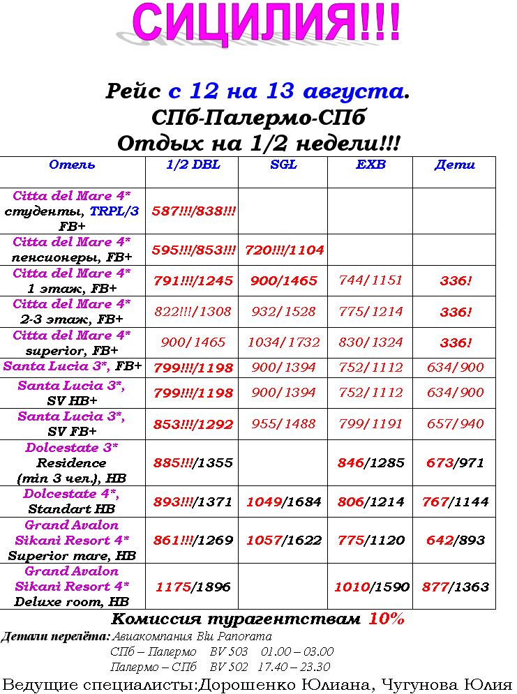 31 Июл 2011 18:01:05 ИТАЛИЯ - СИЦИЛИЯ с 12.08 на 1/2 нед, ОТЕЛИ 3*, 4* - ком. 10% от фирмы АВАТАРА