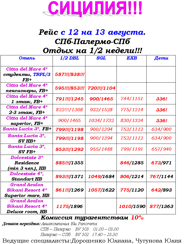 01 Авг 2011 15:04:24 ИТАЛИЯ - СИЦИЛИЯ 12.08/13.08 на 1/2 нед. ОТЕЛИ 3*, 4* от фирмы АВАТАРА