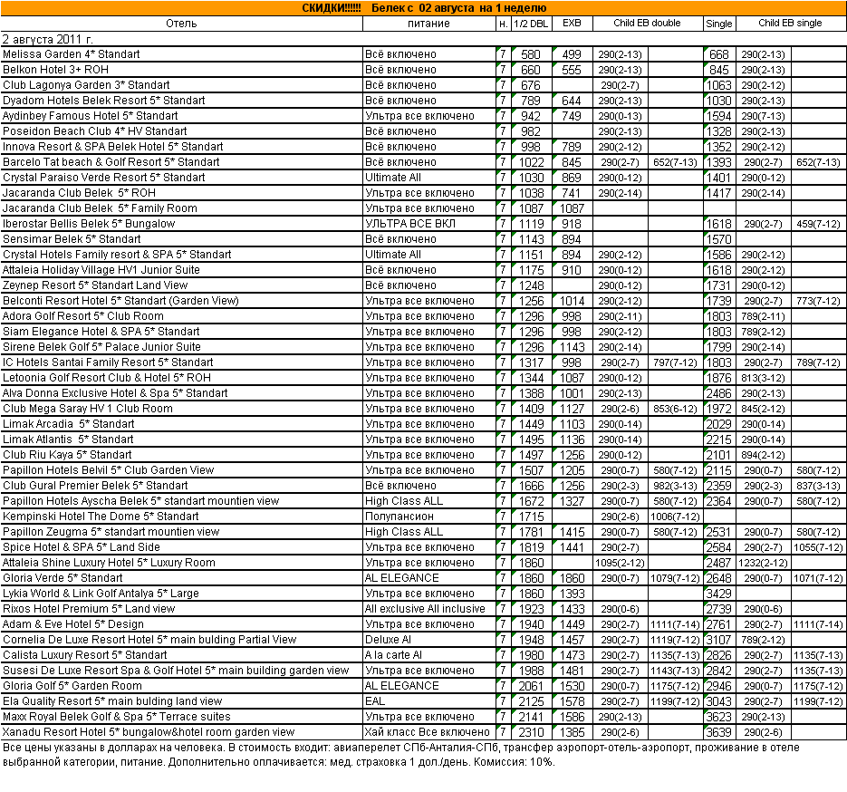 01 Авг 2011 14:47:57 ТУРЦИЯ. Белек с 02 августа на 1 неделю от фирмы АЛМА ТУР