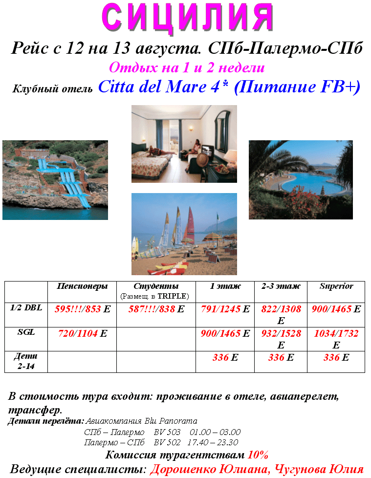 02 Авг 2011 15:10:42 ИТАЛИЯ Сицилия 12.08/13.08 Citta del Mare 4*, скидки! ком. 10% от фирмы АВАТАРА