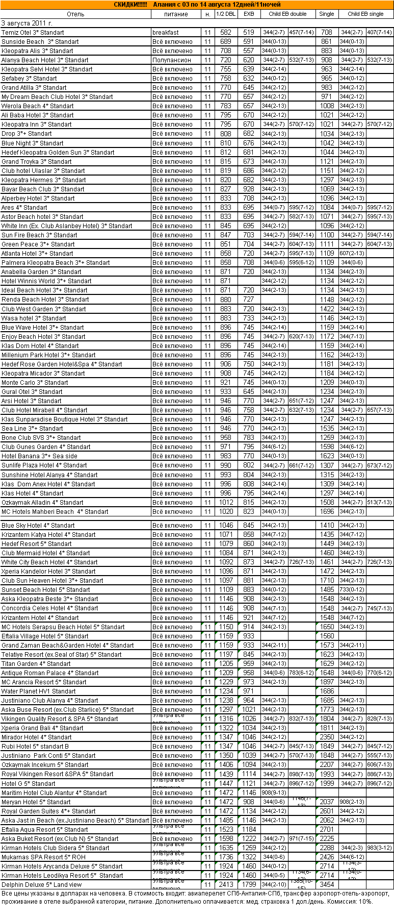 01 Авг 2011 16:21:41 ТУРЦИЯ - АЛАНИЯ с 03 по 14 августа 12дней/11ночей от фирмы АЛМА ТУР