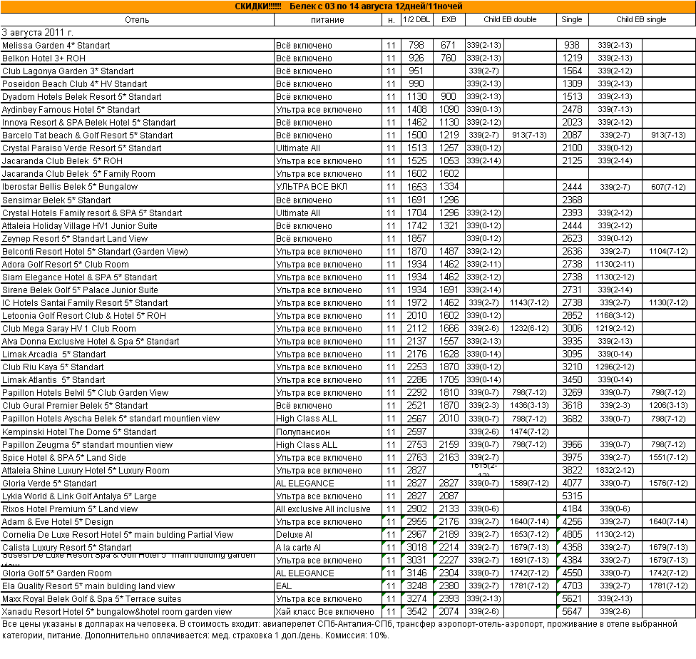 01 Авг 2011 16:22:02 ТУРЦИЯ - БЕЛЕК с 03 по 14 августа 12дней/11ночей от фирмы АЛМА ТУР