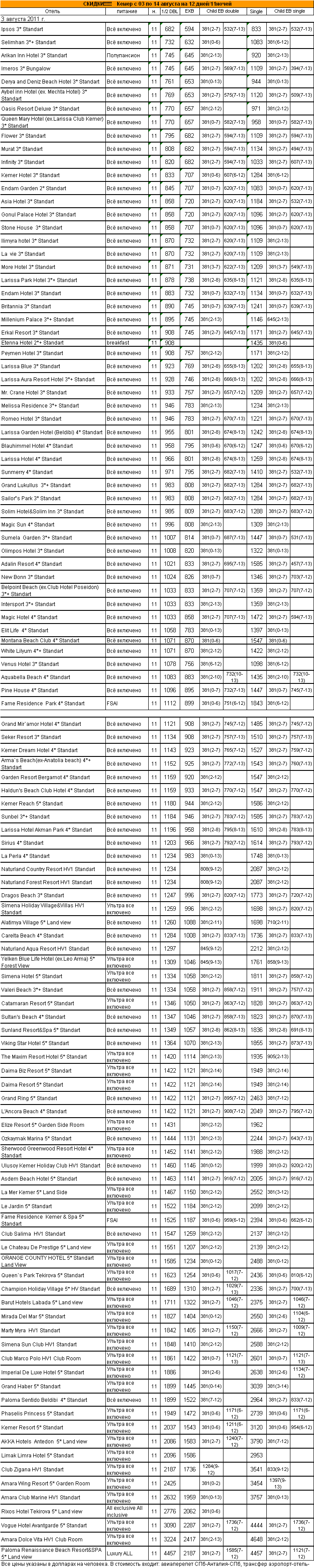01 Авг 2011 16:22:09 ТУРЦИЯ - КЕМЕР с 03 по 14 августа 12дней/11ночей от фирмы АЛМА ТУР