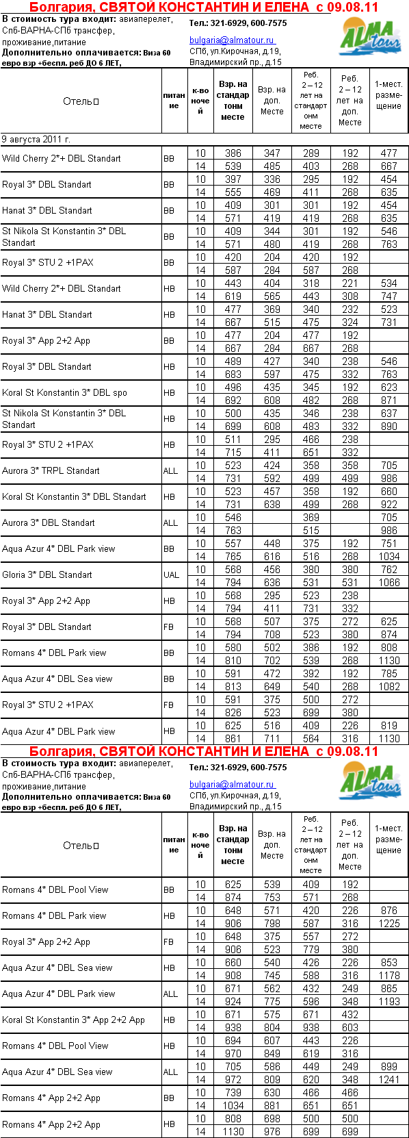 02 Авг 2011 13:30:17 БОЛГАРИЯ - Св. Константин и Елена 09.08 от фирмы АЛМА ТУР