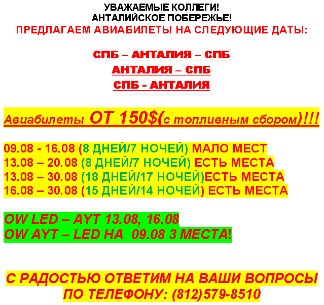 02 Авг 2011 17:05:54 ТУРЦИЯ АНТАЛИЯ АВИАБИЛЕТЫ от 150$ от фирмы TRIVE ТУР