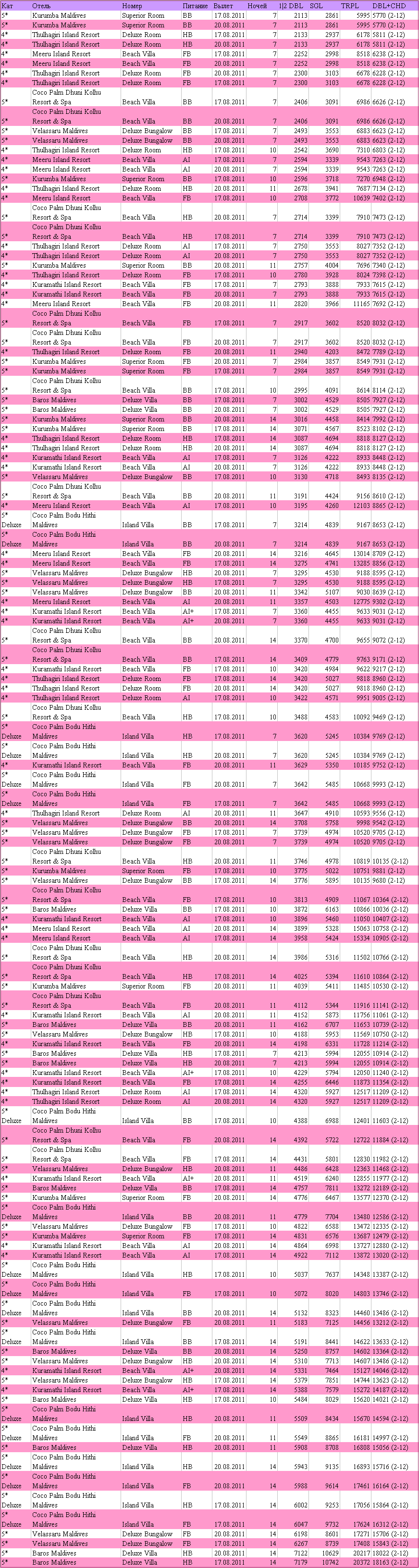 на Мальдивах в выбранном отеле на базе указанного питания ;
