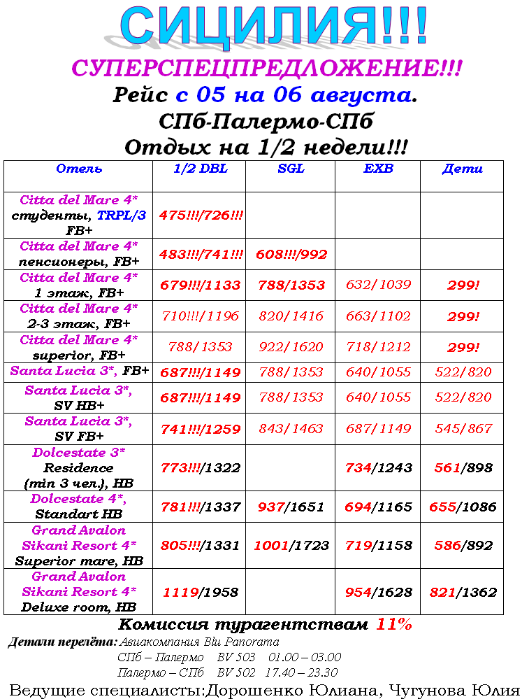 03 Авг 2011 12:03:07 ИТАЛИЯ - СИЦИЛИЯ с 05/06.08 , ком. 11% Нереально низкие цены от фирмы АВАТАРА