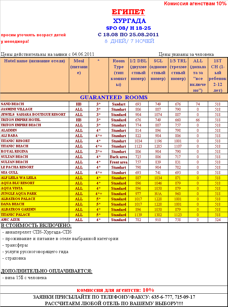 05 Авг 2011 13:51:12 ЕГИПЕТ - ХУРГАДА С 18.08 ПО 25.08.2011 от фирмы EL DAKAMY TRAVEL