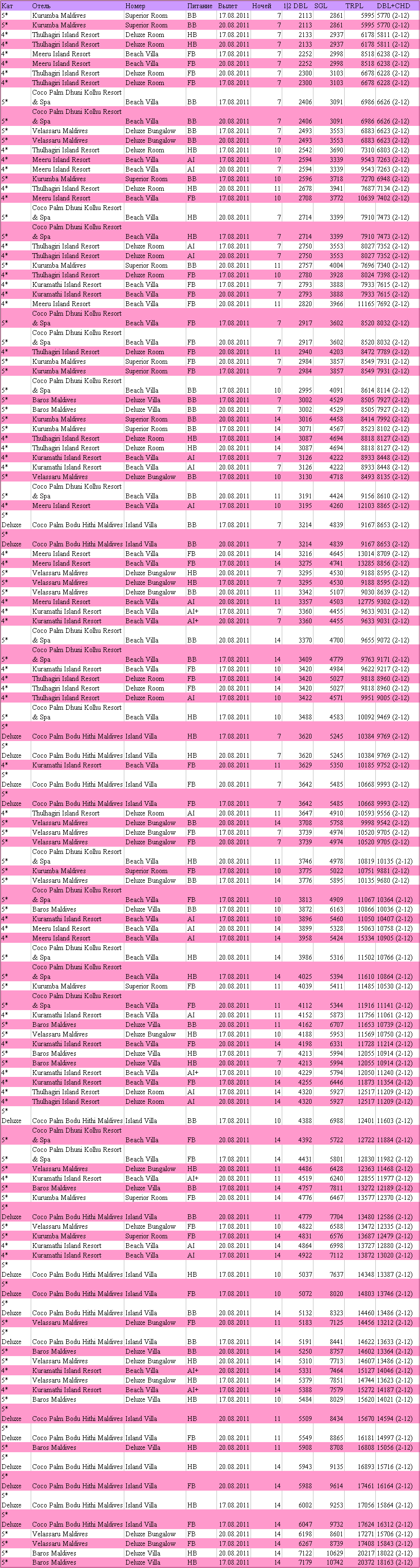 на Мальдивах в выбранном отеле на базе указанного питания ;