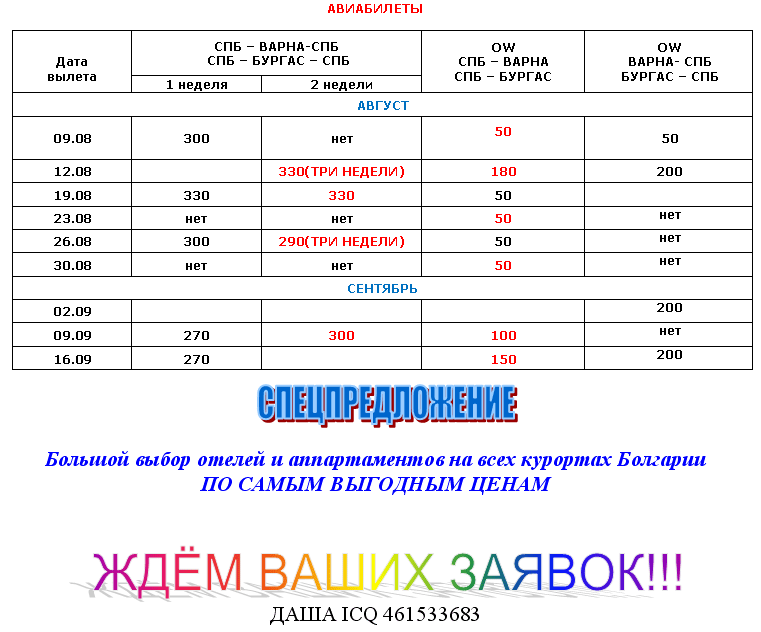 09 Авг 2011 10:26:22 БОЛГАРИЯ - АВИАБИЛЕТЫ от фирмы АСГАРД