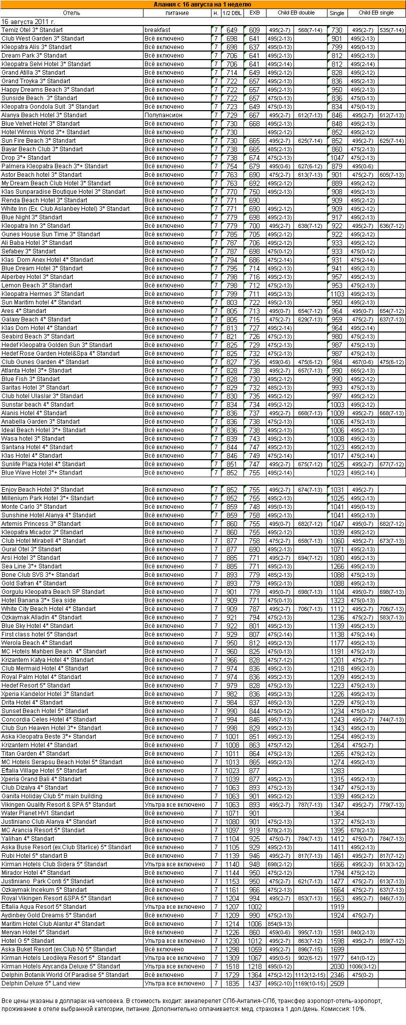 10 Авг 2011 16:10:36 ТУРЦИЯ. Алания с 16 августа на 1 неделю от фирмы АЛМА ТУР