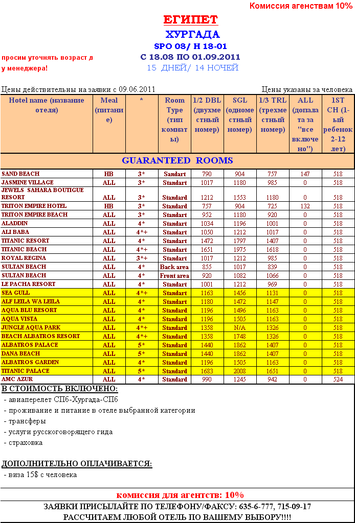 10 Авг 2011 13:15:42 ЕГИПЕТ - ХУРГАДА 18.08-01.09 от фирмы EL DAKAMY TRAVEL