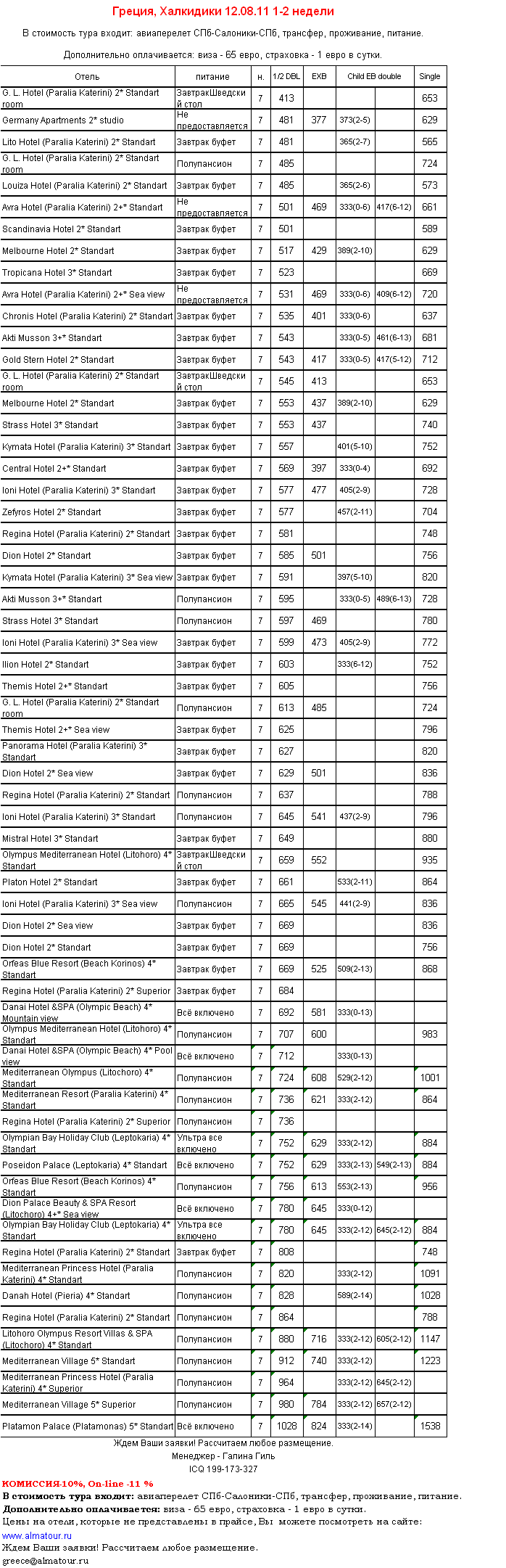 10 Авг 2011 17:04:13 ГРЕЦИЯ, Пиерия 12.08 на 1-2 недели от фирмы АЛМА ТУР