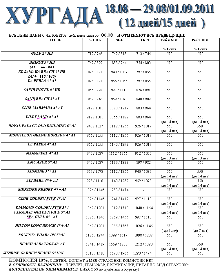 11 Авг 2011 10:55:39 ЕГИПЕТ. Хургада 18.08-29.08/01.09 (12/15дн) от фирмы ФЛАМИНГО