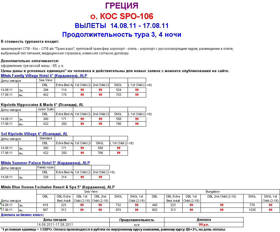 ГРЕЦИЯ,О.КОС - ВЫЛЕТ 14.08, 17.08 - WEEKEND в отелях MITSIS, KIPRIOTIS - ДЕТИ до 18 ЛЕТ - 99 у.е. от фирмы ЮЖНЫЙ КРЕСТ |