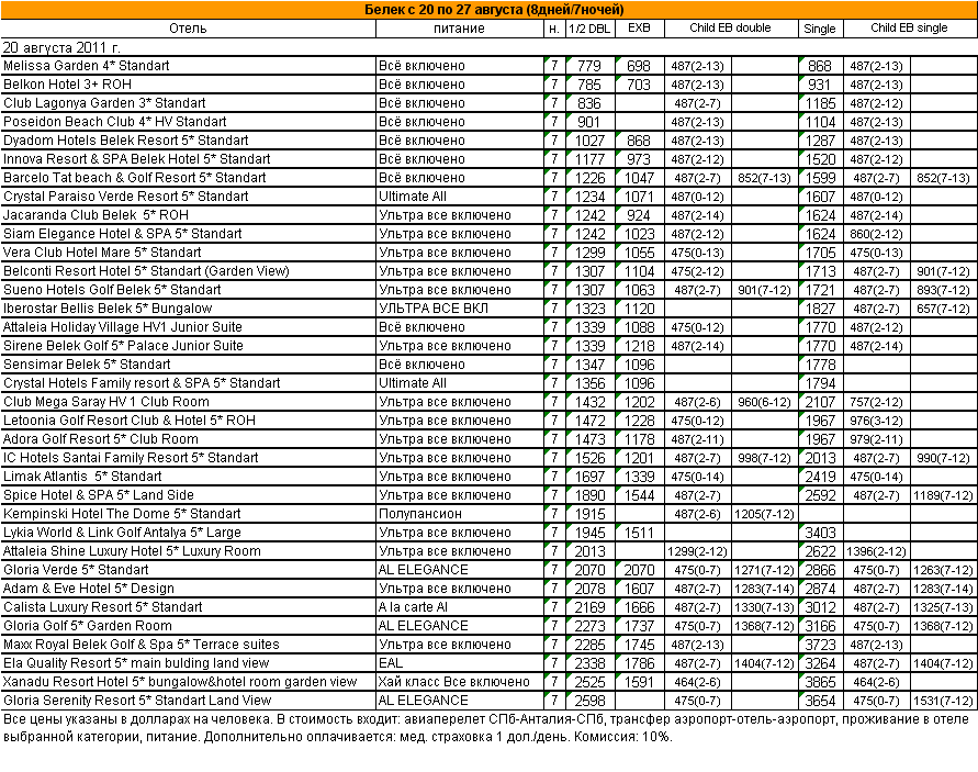 15 Авг 2011 12:36:40 ТУРЦИЯ. Белек с 20 по 27 августа (8дней/7ночей) от фирмы АЛМА ТУР