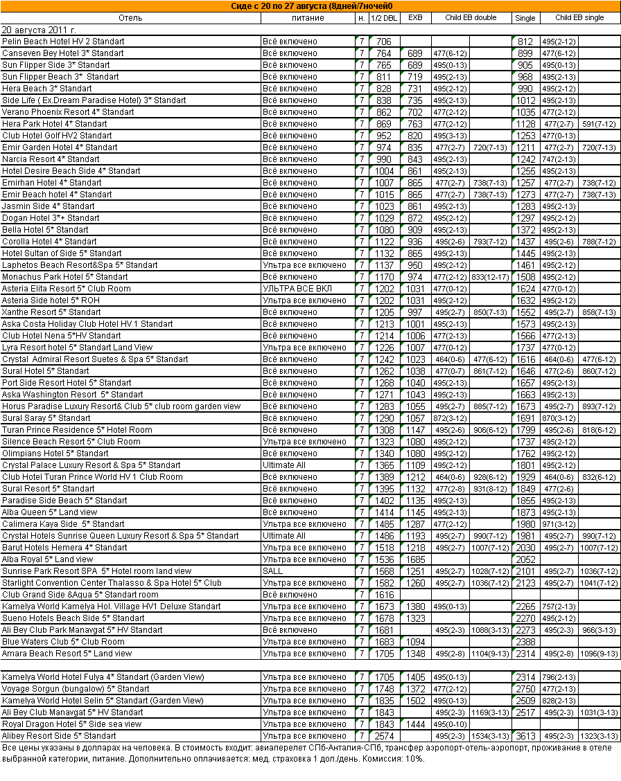 16 Авг 2011 11:31:59 ТУРЦИЯ. Сиде с 20 по 27 августа (8дней/7ночей) от фирмы АЛМА ТУР