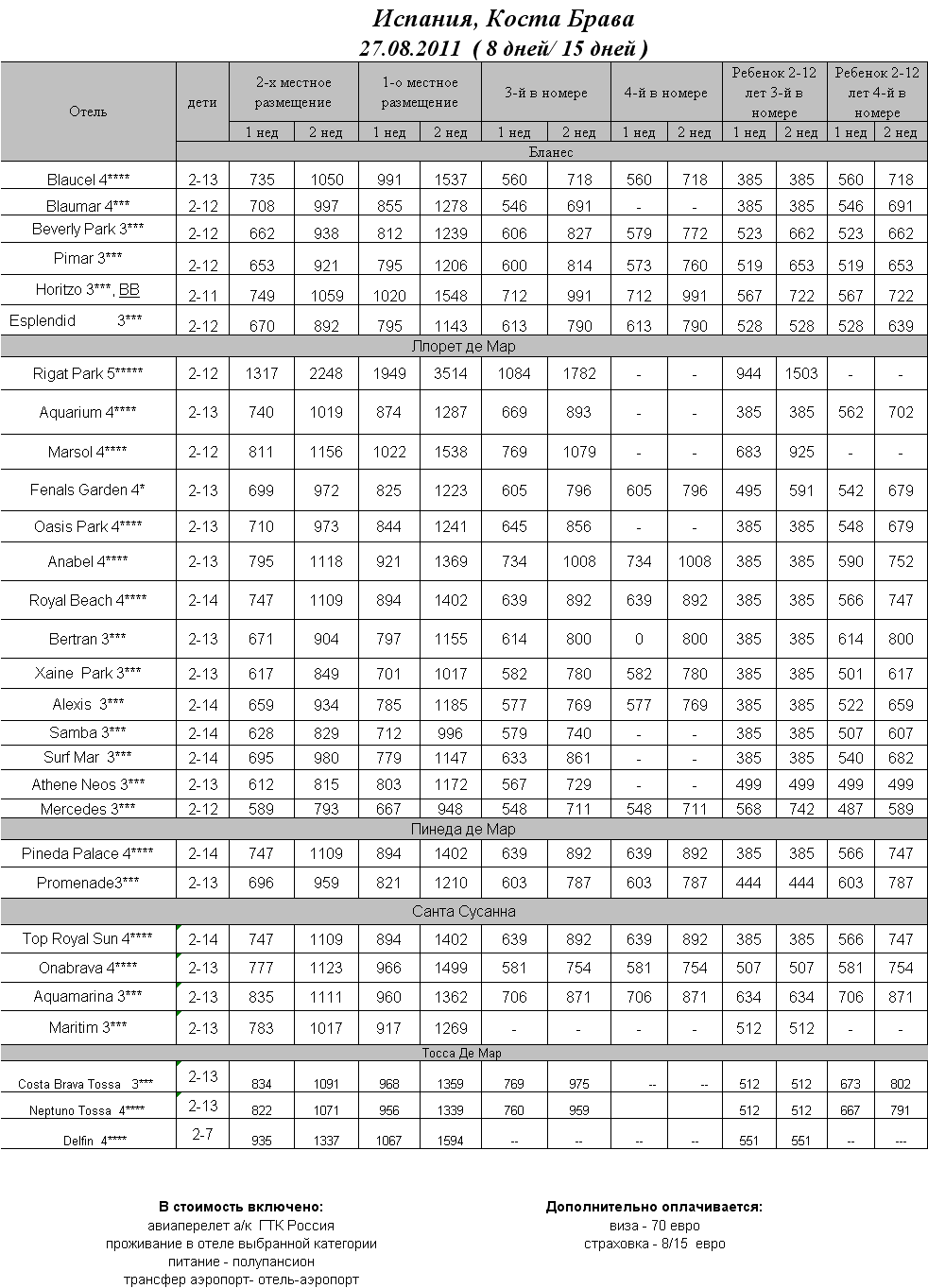 16 Авг 2011 18:01:27 ИСПАНИЯ - КОСТА БРАВА 27.08 на 8/15 дней от фирмы ПРИМА