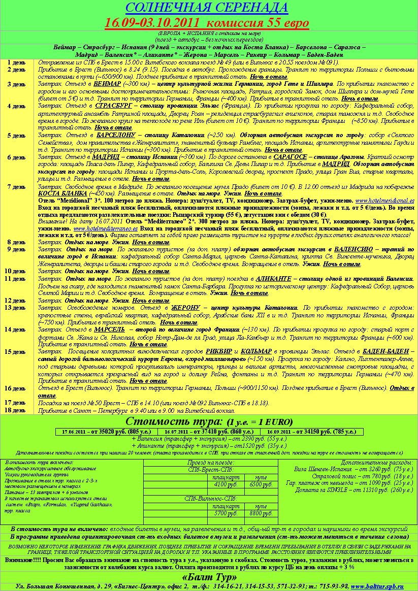17 Авг 2011 11:15:13 ЕВРОПА + ИСПАНИЯ с отдыхом на море 16.09-03.10 Солнечная Серенада от фирмы БАЛТТУР