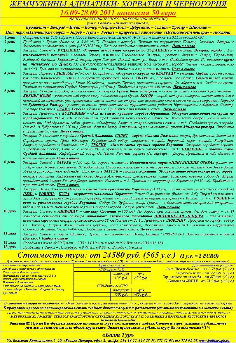 17 Авг 2011 11:16:12 ХОРВАТИЯ и ЧЕРНОГОРИЯ 16.09-28.09 Жемчужины Адриатики от фирмы БАЛТТУР