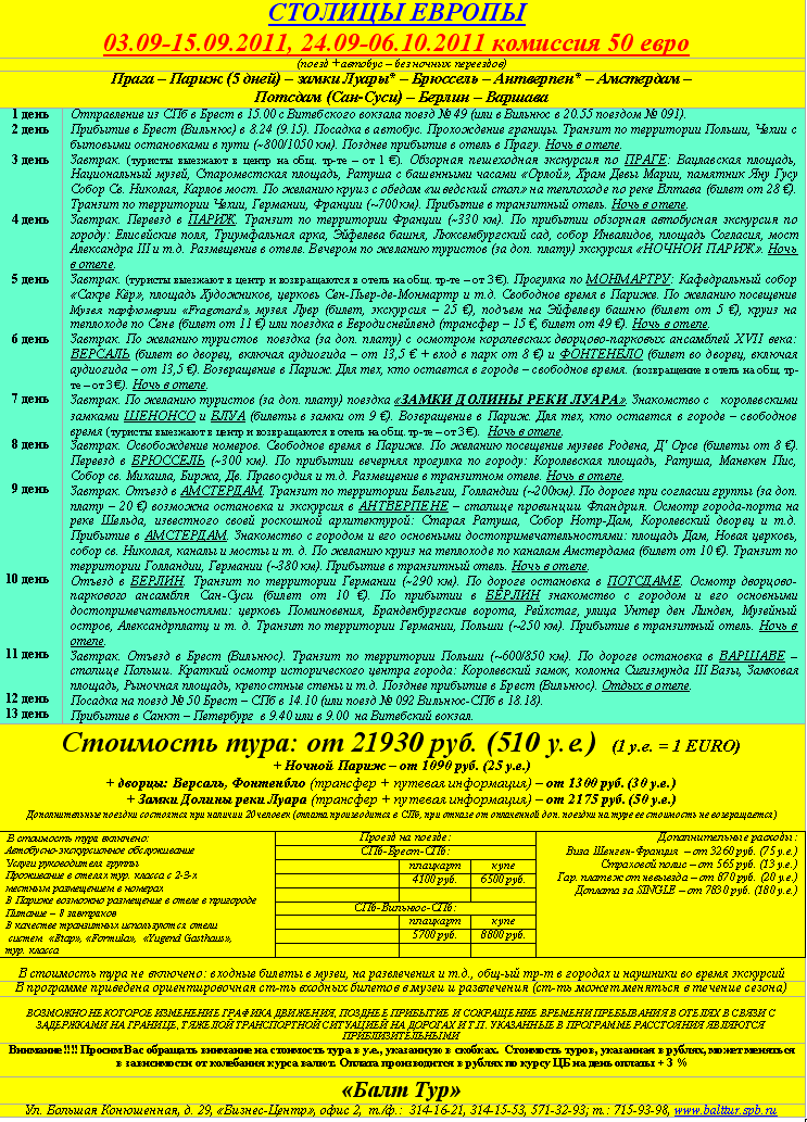 17 Авг 2011 11:16:36 ЕВРОПА Столицы Европы 03.09-15.09, 24.09-06.10 от фирмы БАЛТТУР