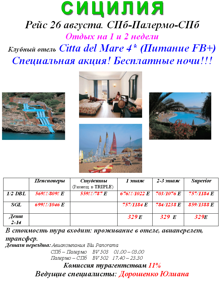 19 Авг 2011 17:02:07 ИТАЛИЯ - СИЦИЛИЯ 26.08 на 1/2 нед Финальные скидки на Citta del Mare 4* от фирмы АВАТАРА
