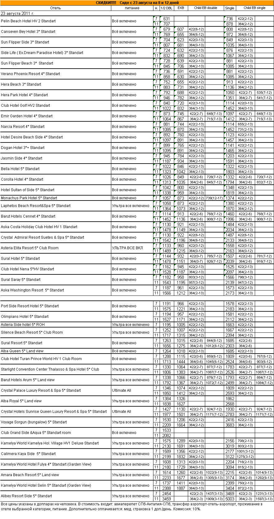19 Авг 2011 14:02:34 ТУРЦИЯ. Сиде с 23 августа на 8 и 12 дней от фирмы АЛМА ТУР