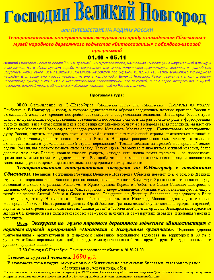 22 Авг 2011 10:23:19 РОССИЯ - Великий Новгород 01.10, 05.11 - тур "Господин Великий Новгород" от фирмы СЕВЕРНАЯ ВЕНЕЦИЯ
