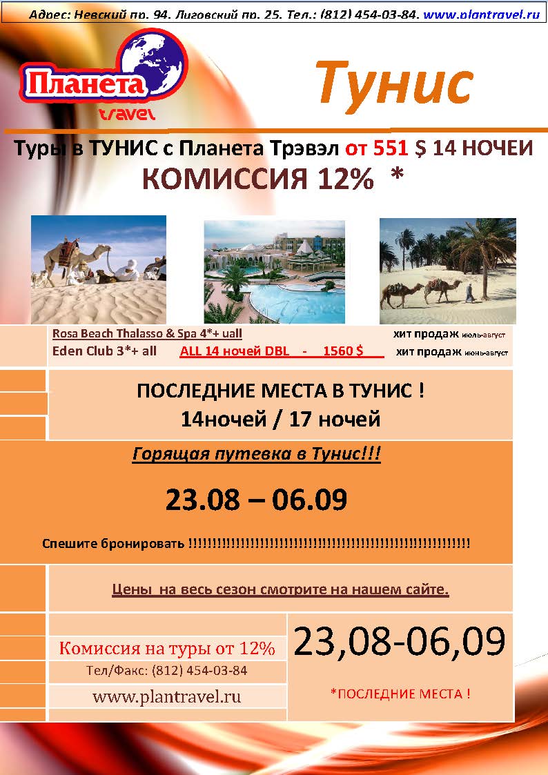 22 Авг 2011 11:25:04 ТУНИС 23.08 последние места от фирмы ПЛАНЕТА TRAVEL