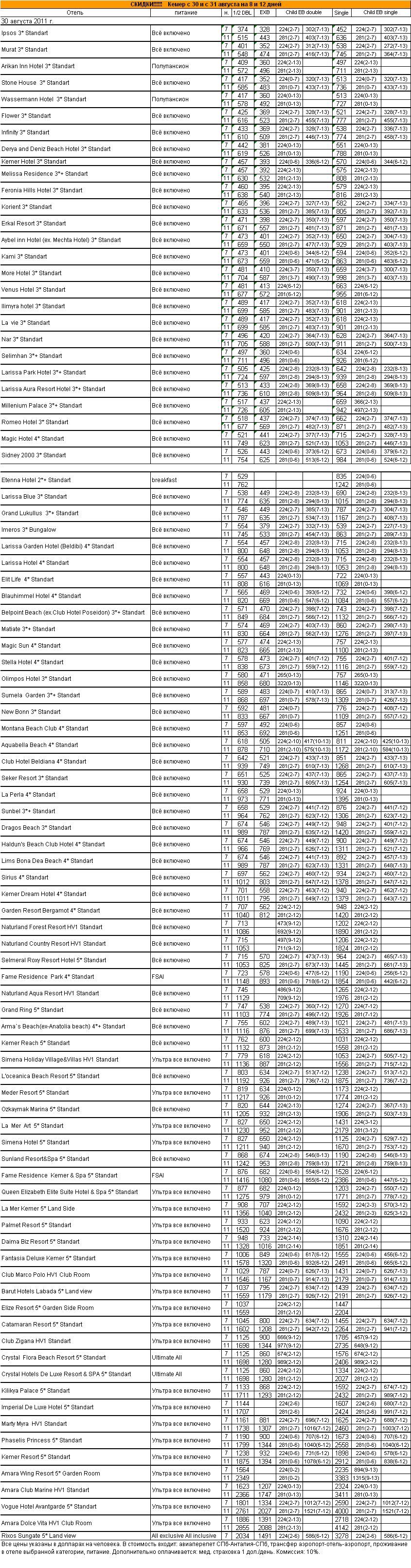 24 Авг 2011 15:01:45 ТУРЦИЯ. Кемер с 30 и с 31 августа на 8 и 12 дней от фирмы АЛМА ТУР