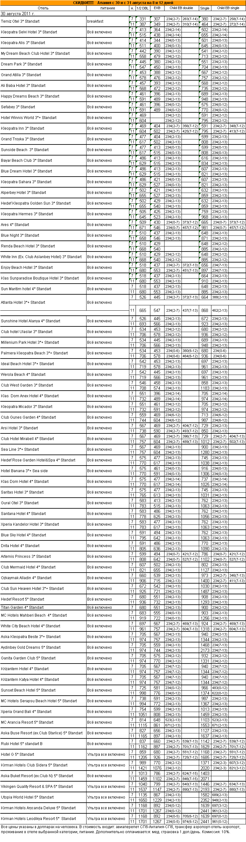 24 Авг 2011 12:27:16 ТУРЦИЯ. Алания с 30 и с 31 августа на 8 и 12 дней от фирмы АЛМА ТУР
