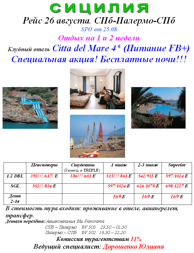 25 Авг 2011 14:07:12 ИТАЛИЯ Сицилия, вылет в ночь с 26/27.08 Citta Del Mare 4* Ком. 11% от фирмы АВАТАРА