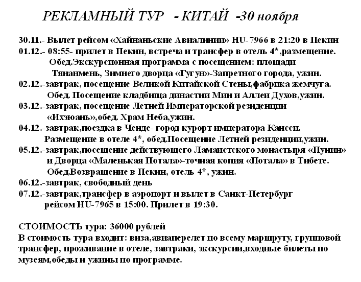 25 Авг 2011 14:45:41 РЕКЛАМНЫЙ ТУР - КИТАЙ - 30 ноября от фирмы ИВОЛГА