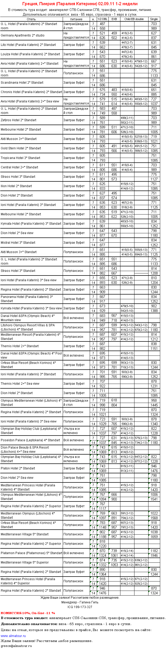25 Авг 2011 15:23:51 ГРЕЦИЯ, Пиерия (Паралия Катерини) 02.09 на 1-2 недели от фирмы АЛМА ТУР