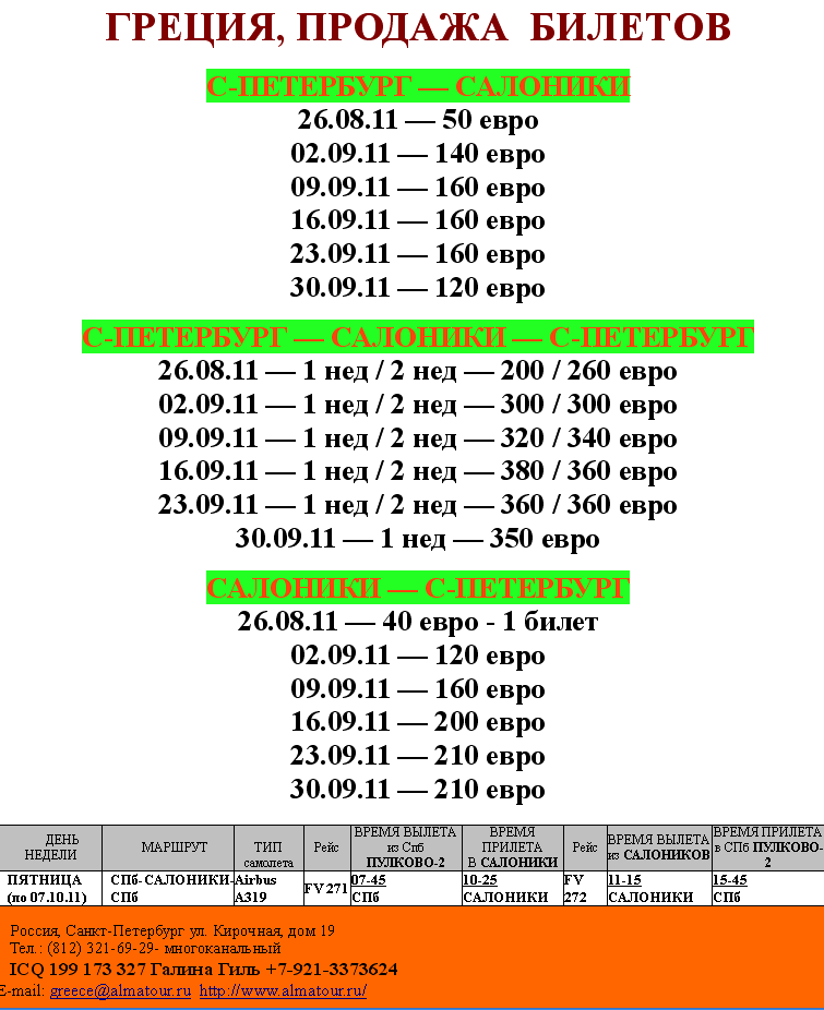 25 Авг 2011 17:10:56 ГРЕЦИЯ, авиабилеты СПб-Салоники-СПб август-сентябрь от фирмы АЛМА ТУР