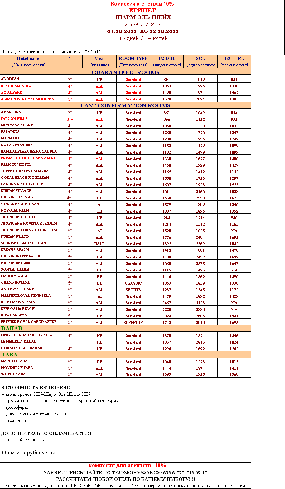 26 Авг 2011 12:31:59 ЕГИПЕТ - ШАРМ ЭЛЬ ШЕЙХ 04.10.2011 ПО 18.10.2011 от фирмы EL DAKAMY TRAVEL