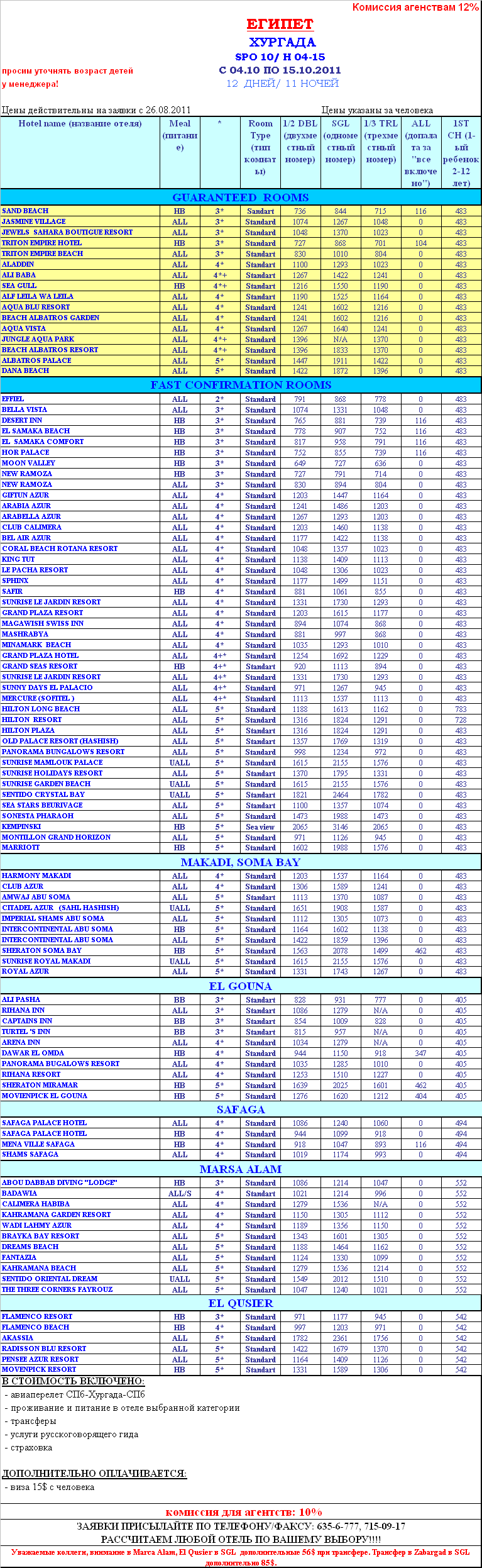 26 Авг 2011 13:07:40 ЕГИПЕТ - ХУРГАДА С 04.10 ПО 15.10.2011 от фирмы EL DAKAMY TRAVEL