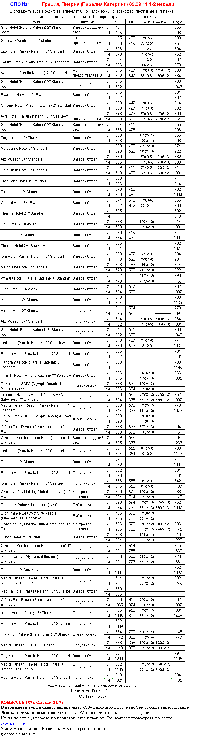26 Авг 2011 16:54:38 ГРЕЦИЯ, Пиерия (Паралия Катерини) 09.09 на 1-2 недели от фирмы АЛМА ТУР