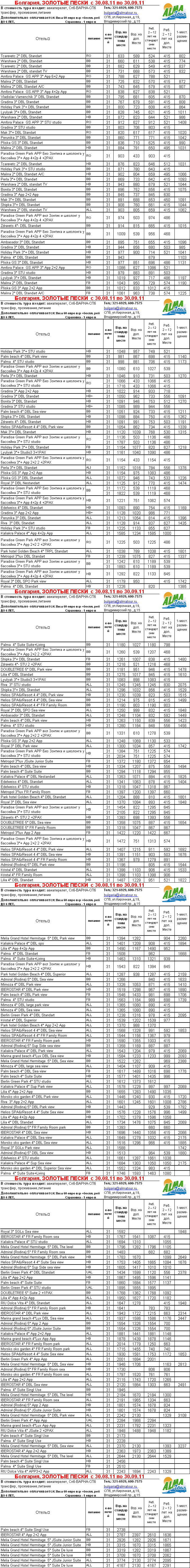 27 Авг 2011 12:58:21 БОЛГАРИЯ. ЗОЛОТЫЕ ПЕСКИ с 30.08.11 по 30.09.11 от фирмы АЛМА ТУР