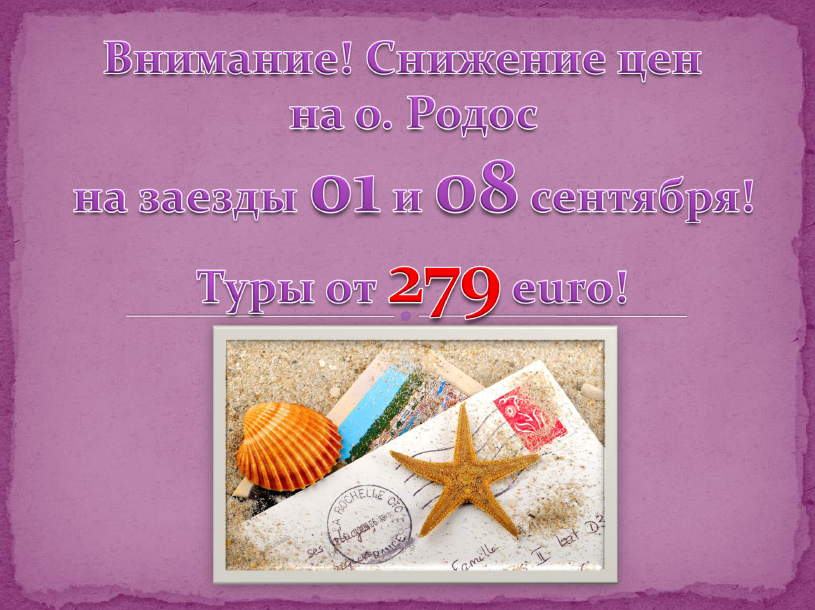 ГРЕЦИЯ. РОДОС. ТУРЫ НА О. РОДОС 01 И 08 СЕНТЯБРЯ ОТ 279 EURO от фирмы СОЛВЕКС |