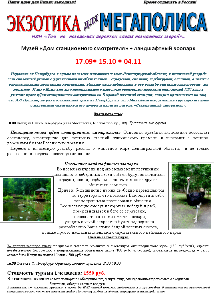 Тел. +7 (921) 939-81-99, е-mail pitert@dneprovoi.spb.ru, Skype: PiterDnepr, видео стран www.tours-tv.ru