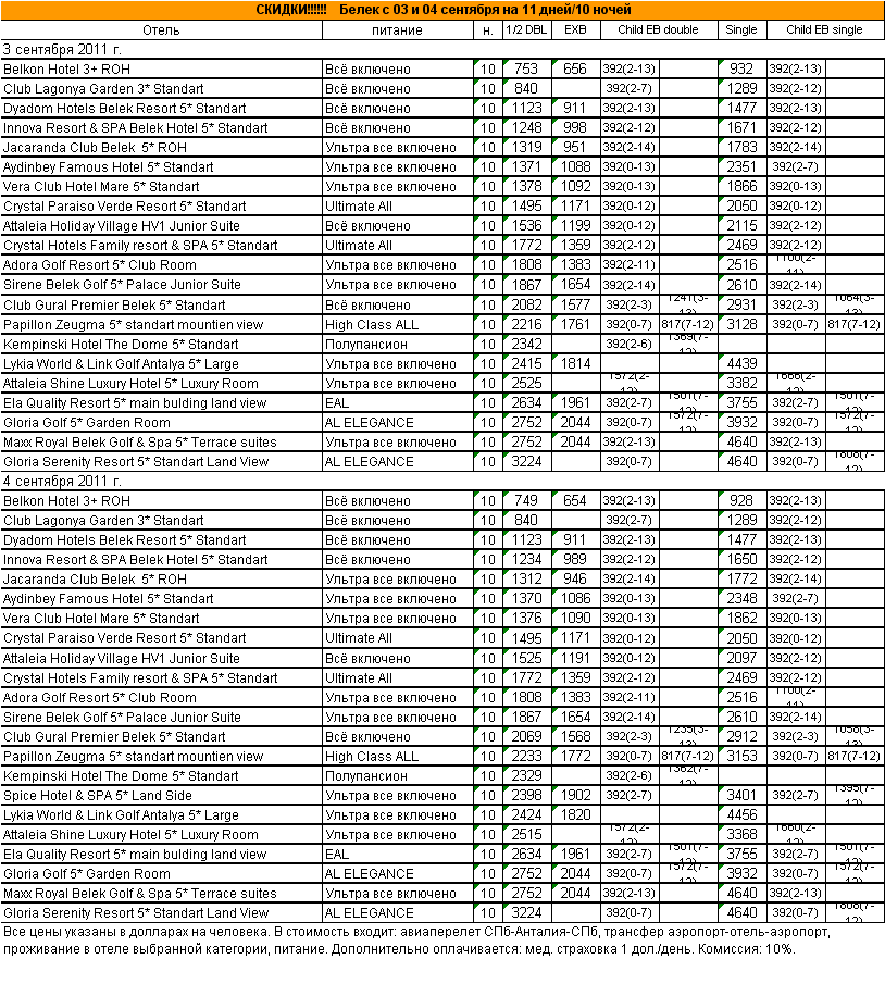 02 Сен 2011 17:03:33 ТУРЦИЯ - БЕЛЕК с 03 и 04 сентября на 11дн/10н от фирмы АЛМА ТУР
