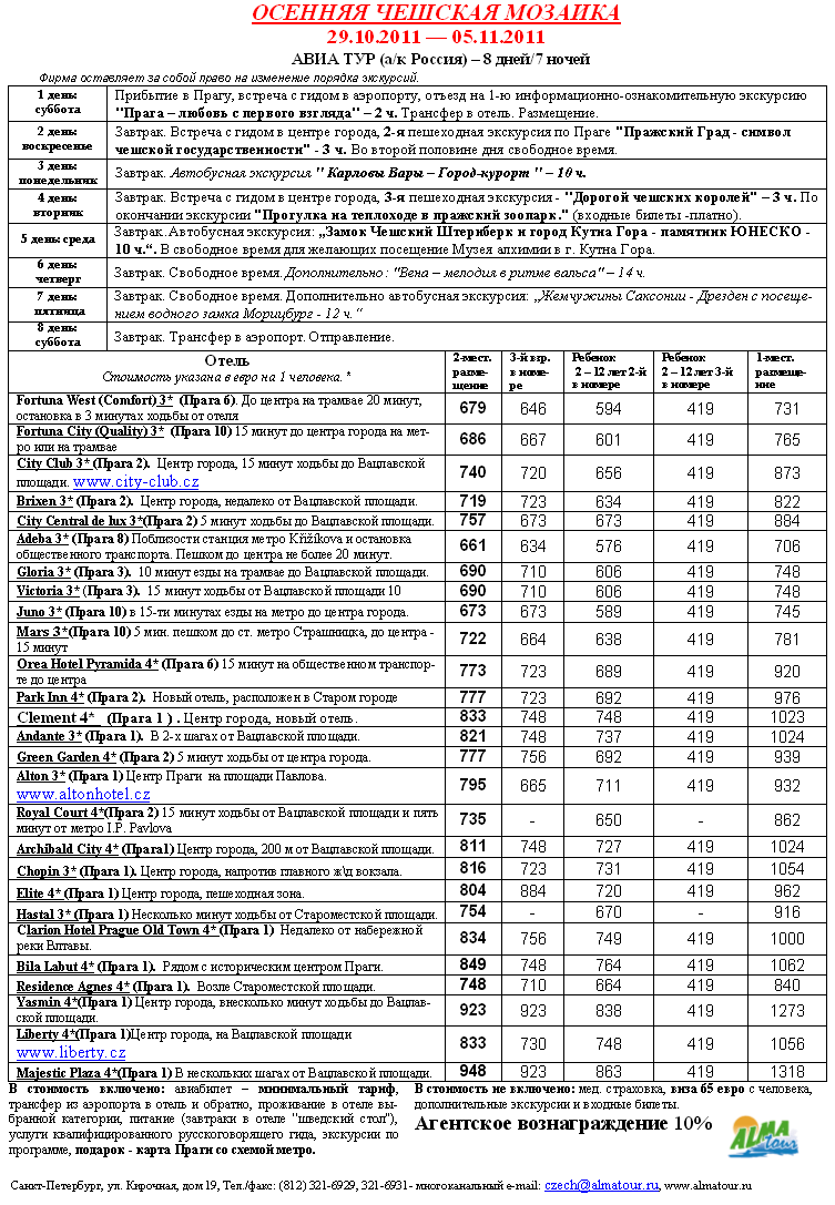 05 Сен 2011 13:16:14 ЧЕХИЯ 29.10-05.11 Осенняя Чешская Мозаика от фирмы АЛМА ТУР