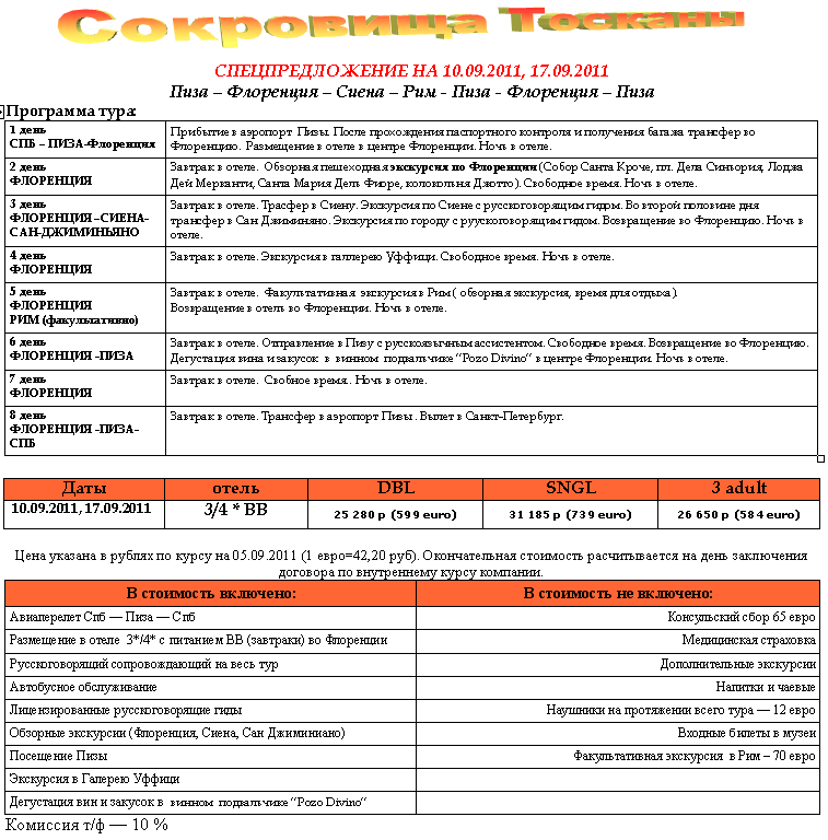05 Сен 2011 13:26:54 ИТАЛИЯ Сокровища Тосканы (Пиза) 10.09, 17.09 от фирмы ФЛАМИНГО